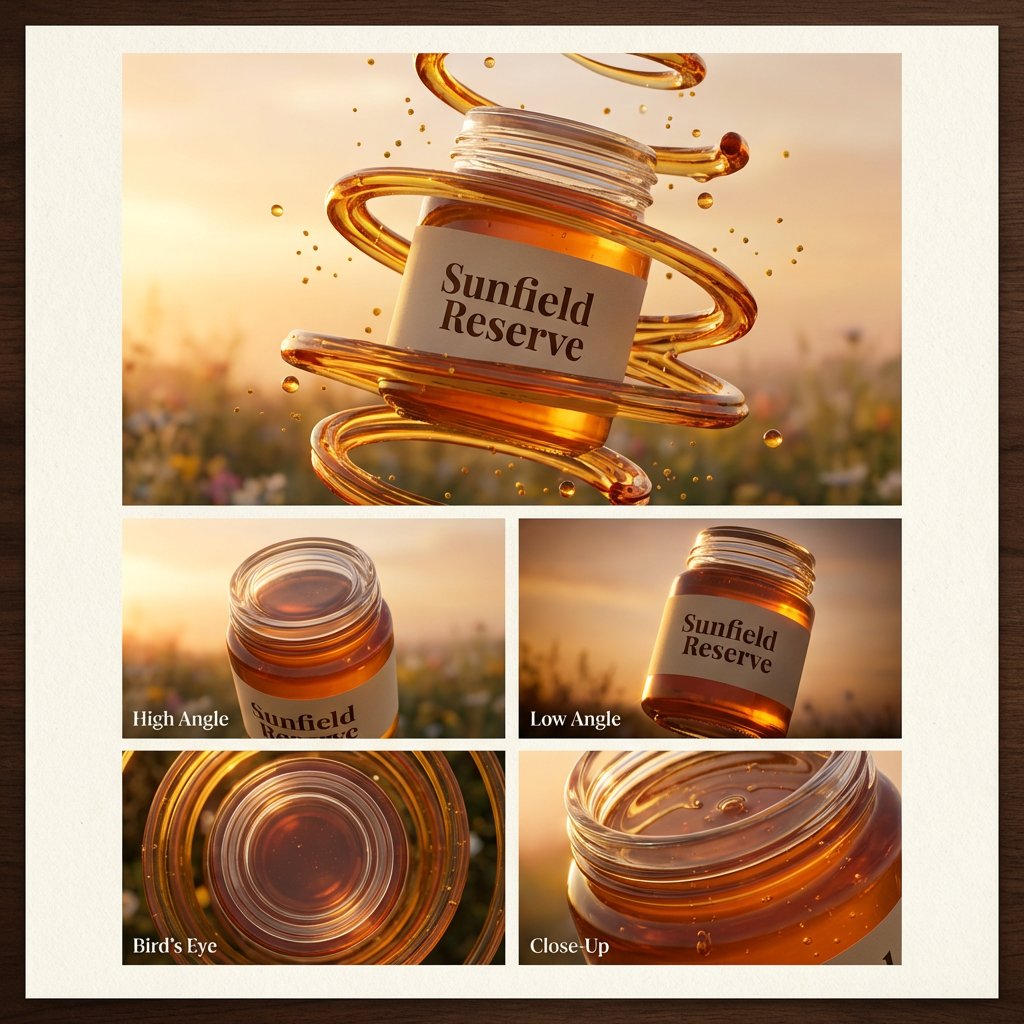 晨曦中悬浮的琥珀蜂蜜广告