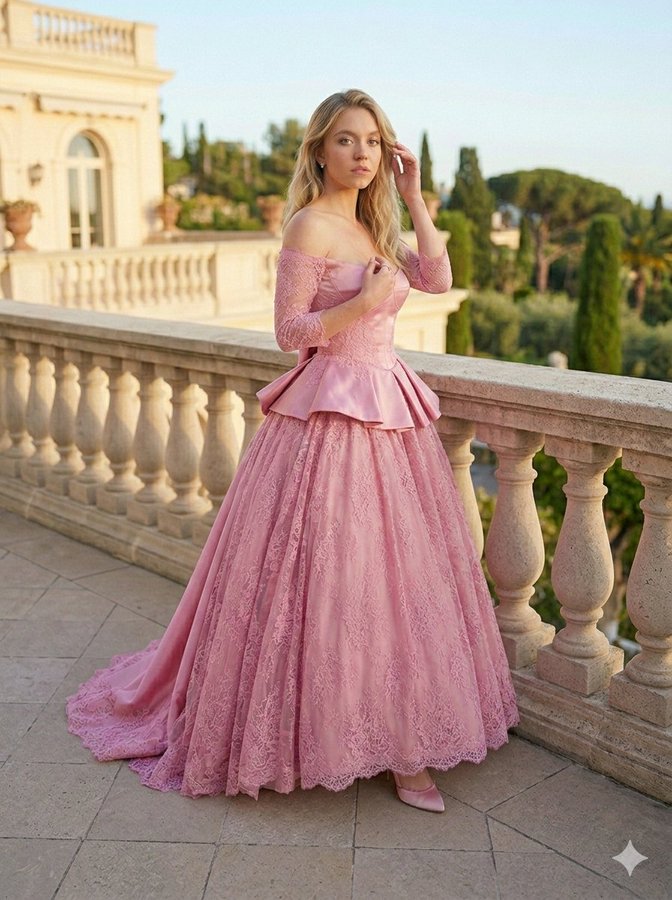 金色夕阳下的尘紫粉礼服名伶