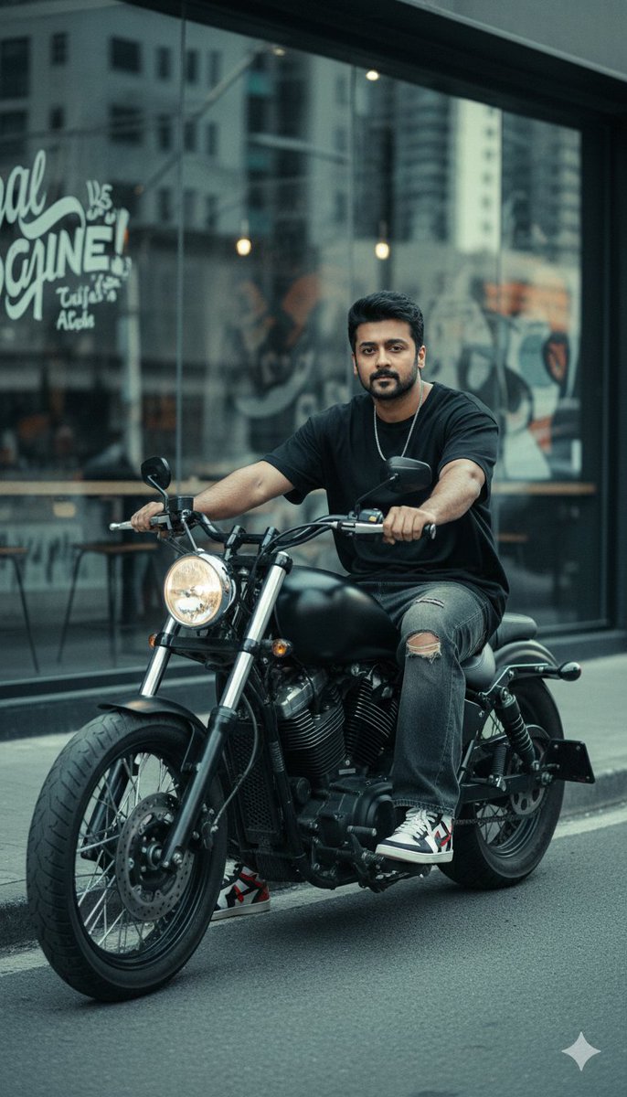 夜骑哈雷摩托的都市街头闪光灯写实照