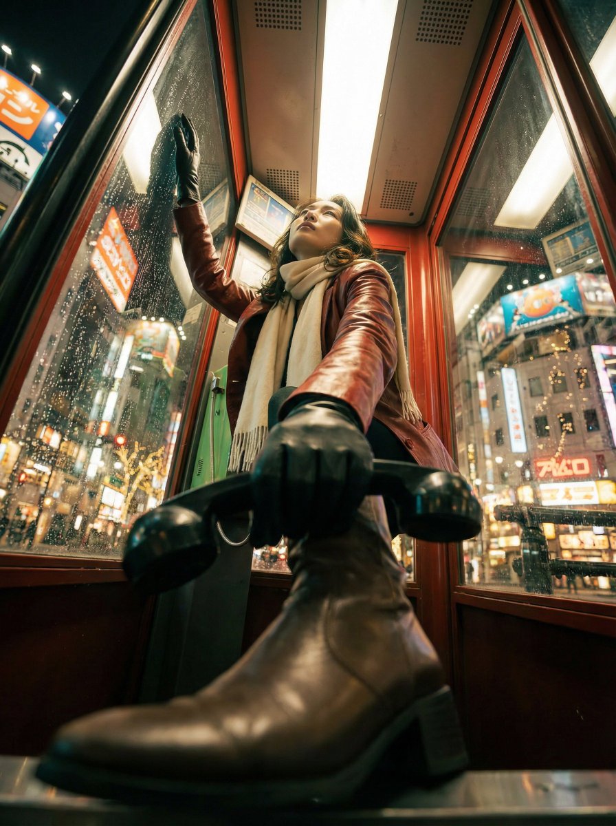 1girl, solo, 惊艳的20岁西方白种女性,引人注目的双色头发,完美分边的长直发,一侧白金白一侧深黑,整齐的一刀切刘海,锐利的淡蓝色眼睛,完美对称的洋娃娃脸,高颧骨,分明的下颌线,笔直高鼻梁,饱满丰唇,淡淡的眼线和腮红,光泽唇彩,穿着优雅的露肩酒红栗色衬衫,领口和袖口多层荷叶边,长袖泡泡袖在手腕处收束,紧身黑色高腰迷你裙,黑色繁复蕾丝项圈装饰暗红与黑色小玫瑰,透明黑色连裤袜或长筒袜,自信站姿一手叉腰或双臂放松,身体微侧,直视镜头散发诱人表情,极简深灰/黑色摄影棚背景,专业氛围光影配柔和主光与发丝边缘轮廓光,高细节皮肤毛孔、面料褶皱与蕾丝花纹,真实发色过渡,电影级时尚摄影,锐利对焦,照片级真实,8K分辨率,超高细节