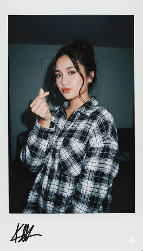 posing like a professional model. Her legs are crossed gracefully,