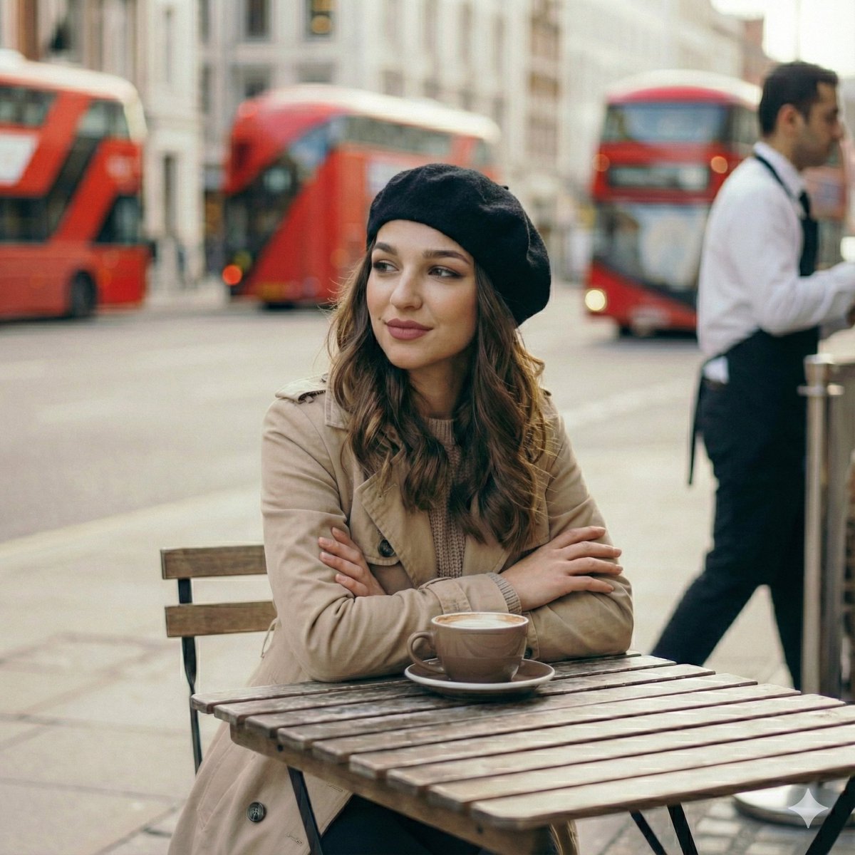 伦敦早春清晨咖啡馆的静谧时光少女
