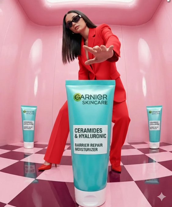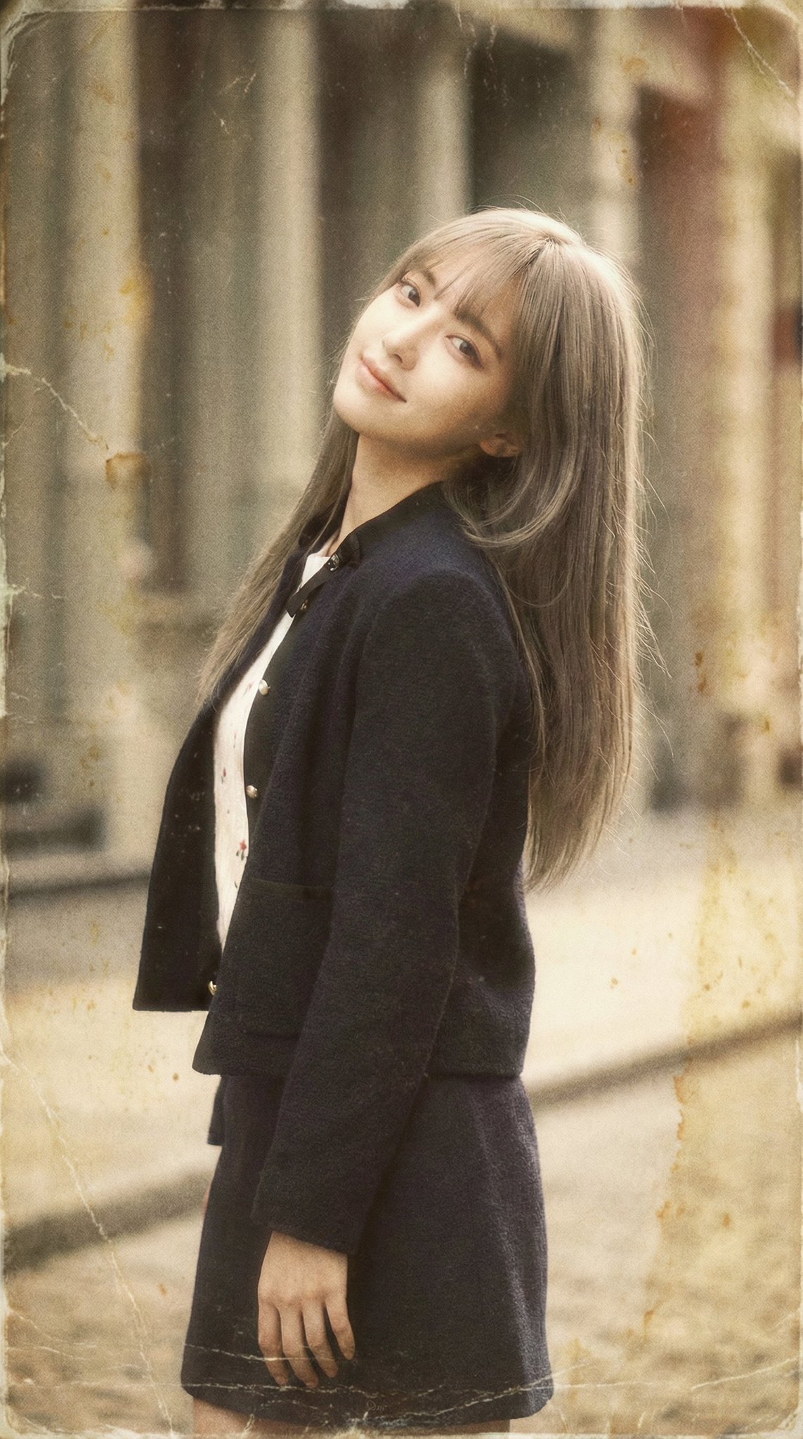 一张透视效果极佳的照片,照片中一位娇小的女子坐在一个巨大的透明紫色JBL音箱上,音箱被她用两根手指夹着,手指上还画着精致的美甲。女子身穿浅蓝色连帽衫、宽松的黑色裤子、白色厚底运动鞋和浅蓝色帽子。她双腿分开,姿态随意地坐着,手里拿着一个小手提包,自信地看向镜头。柔和的自然光线,干净的米色墙面背景,逼真的阴影,丰富的细节,时尚摄影风格,浅景深,超逼真,4K分辨率。