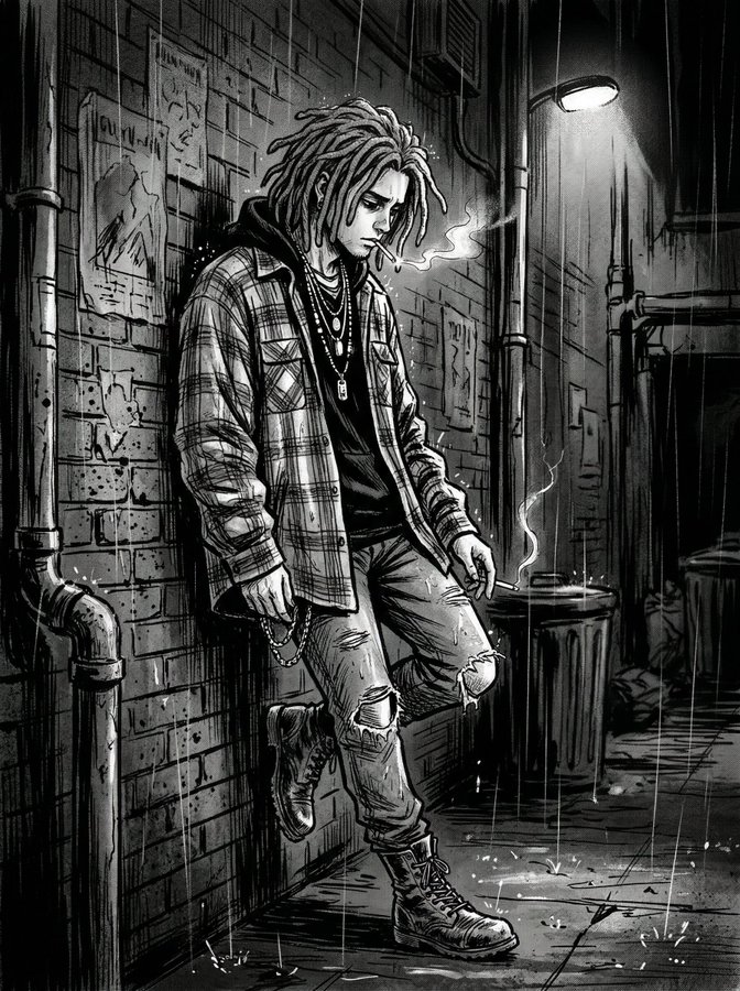 { "image_type": "摄影肖像", "orientation": "竖幅", "composition": { "framing": "紧凑中景特写", "crop": "主体裁剪至躯干中部,头部和手部占据画面主导位置", "angle": "四分之三侧面", "camera_position": "略高于视线水平", "subject_placement": "主体略微偏离中心,置于画面右侧", "negative_space": "极少,集中于左侧背景" }, "subject": { "gender_presentation": "男性", "approximate_age_range": "20 多岁末至 30 多岁中", "pose": "头部向下倾斜,手抬至太阳穴,呈沉思状", "facial_expression": "沉思、内省、严肃", "gaze_direction": "向下,目光涣散", "hair": { "style": "短发,蓬松,有层次感", "tone": "深色" }, "facial_hair": { "type": "短髭胡须", "density": "中等" }, "clothing": { "upper_garment": "长袖针织毛衣", "texture": "罗纹或编织面料", "tone": "深色" }, "accessories": { "watch": { "type": "模拟腕表", "band": "皮质表带", "dial": "极简主义,浅色表盘", "style": "经典,低调" } } }, "lighting": { "type": "影室灯光", "style": "低调", "direction": "左上方侧光", "contrast": "高对比度,深邃阴影", "highlights": "前额、鼻部、颧骨和手部有强烈高光", "shadow_falloff": "面部和身体右侧阴影柔和但明显" }, "color": { "palette": "单色", "dominant_tones": [ "黑色", "炭灰色", "柔和的灰色", "米白色高光" ], "saturation": "无", "contrast_level": "高" }, "background": { "type": "影室背景布", "texture": "平滑,带有微妙的渐变", "tone": "深灰色至近乎黑色", "detail_level": "极简,无干扰" }, "focus_and_depth": { "focus": "面部和手部清晰锐利", "depth_of_field": "浅至中等景深", "background_blur": "柔和,不突兀" }, "technical_characteristics": { "photographic_style": "艺术肖像", "likely_lens": "短焦远摄镜头(约 85mm 等效焦距)", "aperture_character": "大光圈效果", "grain": "非常细腻,噪点极少", "sharpness": "主体清晰度高,色调过渡平滑" }, "mood_and_tone": { "emotional_quality": "内省、忧郁、沉思", "aesthetic": "极简、戏剧性、电影感", "visual_narrative": "私人思考或情感沉重的时刻" }, "post_processing": { "black_and_white_conversion": "高质量黑白转换", "contrast_adjustment": "增强对比度", "clarity": "面部特征应用适度清晰度", "vignette": "微妙的边缘暗角" }, "artistic_references": { "style_influences": [ "经典黑白肖像摄影", "电影人物研究", "时尚杂志肖像摄影" ] } }